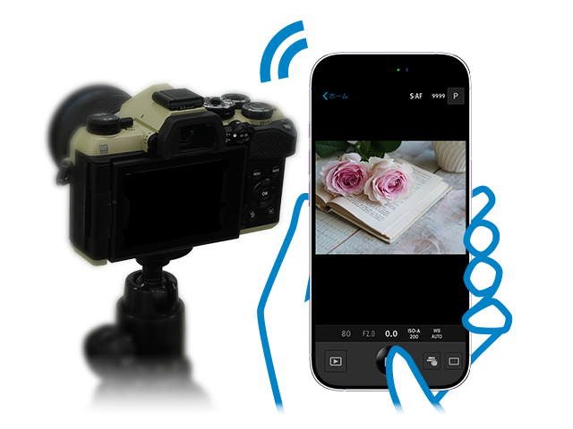 - ワイヤレスレリーズモード:カメラで撮影設定を行い、スマートフォンでレリーズ操作のみを行う