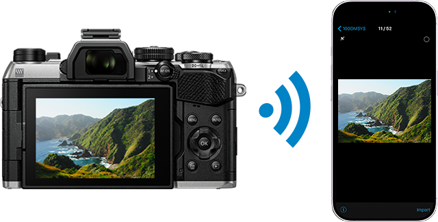 U kunt met OI.Share op de camera opgeslagen foto’s bekijken en importeren naar uw smartphone. Selecteer de foto's die u wilt delen van tevoren op de camera (Deelorder) om een Deelorder-melding naar een smartphone te sturen. Met een camera die is ingesteld voor Bluetooth en Wi-Fi kunt u OI.Share afzonderlijk gebruiken om foto's eenvoudiger te importeren.