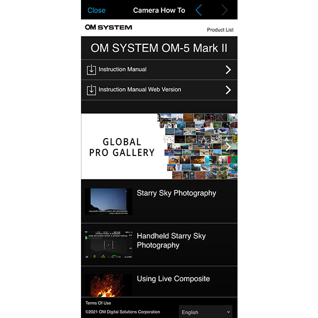 | Camera's met Bluetooth en Wi-Fi | OM-1 Mark II, OM-1, OM-3, OM-5 Mark II, OM-5, OM-D E-M1X, OM-D E-M1 Mark III, OM-D E-M5 Mark III, OM-D E-M10 Mark IV, PEN E-P7, PEN E-PL10, PEN E-PL9, Tough TG-7 |