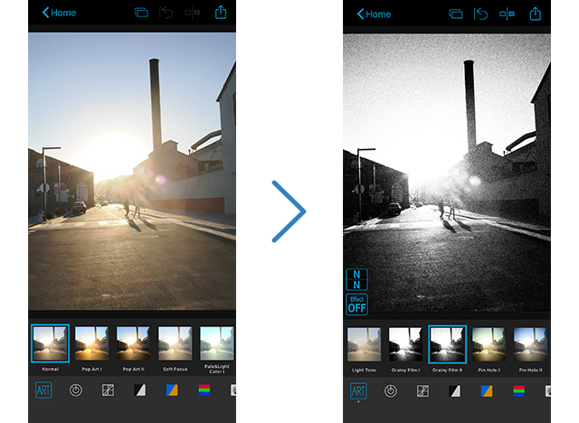 Vergroot de creatieve mogelijkheden met kunstfilters. U kunt kiezen uit 28 verschillende filteropties en 8 bijkomende effecten.