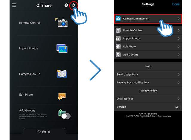De app OM Image Share (OI.Share) is vereist voor het draadloos importeren van beelden die zijn gemaakt met een OM SYSTEM-camera. U kunt met uw smartphone foto’s importeren en u kunt uw smartphone als afstandsbediening gebruiken om op afstand opnamen te maken. U kunt afbeeldingen bovendien bewerken en locatiegegevens toevoegen aan opgeslagen afbeeldingen. De basisbewerkingsopties zoals belichtingscompensatie en beeldbewerking bevatten functies die de uitdrukkingskracht vergroten, zoals Art Filter en Color Creator. Met deze smartphone-app wordt fotograferen leuker dan ooit en kunt u uw camera op nieuwe manieren gebruiken.